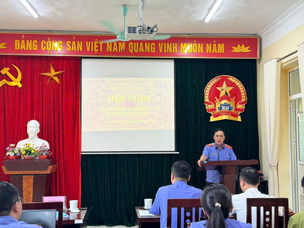 Chiều ngày 24 tháng 4 năm 2026, VKSND khu vực 1 - Lai Châu chủ trì tổ chức Hội nghị giao ban liên ngành tố tụng 06 tháng đầu năm 2026. Hội nghị có sự tham dự của đồng chí Nguyễn Huy Thắng, Phó Viện trưởng VKSND tỉnh Lai Châu, đồng chí Giang Thị Vượng, Phó Chánh án TAND tỉnh Lai Châu, các đồng chí Lãnh đạo Viện kiểm sát, Tòa án nhân, Phòng THADS khu vực 1, Hạt kiểm lâm Tam Đường và Công an 06 xã, phường trên địa bàn (Tân Phong, Đoàn Kết, Bình Lư, Tả Lèng, Khun Há, Pu Sam Cáp). Đồng chí Lầu Trung Dũng, Viện trưởng VKSND khu vực 1 - Lai Châu chủ trì hội nghị.